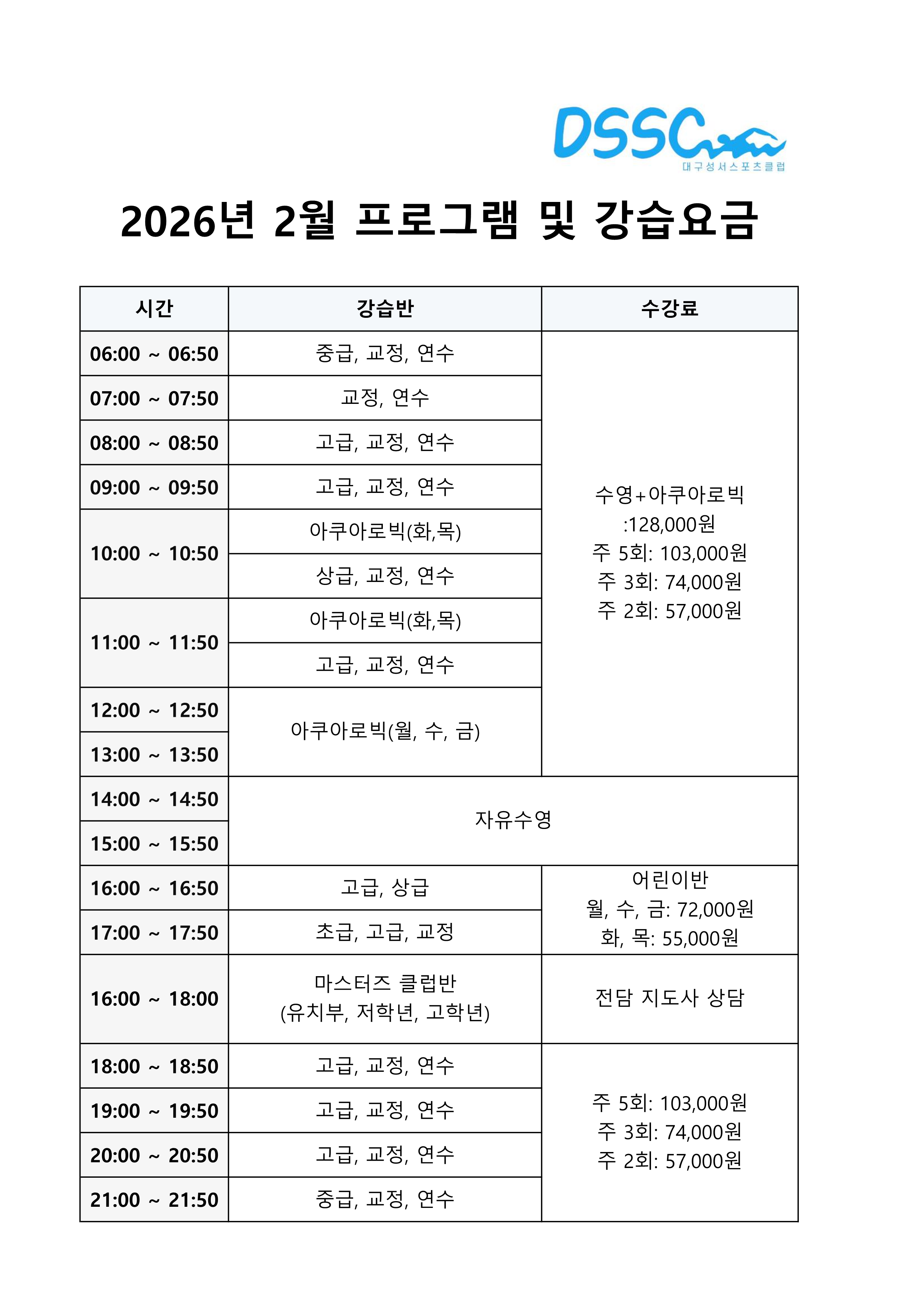 26.1.13(화) 자유수영 안내