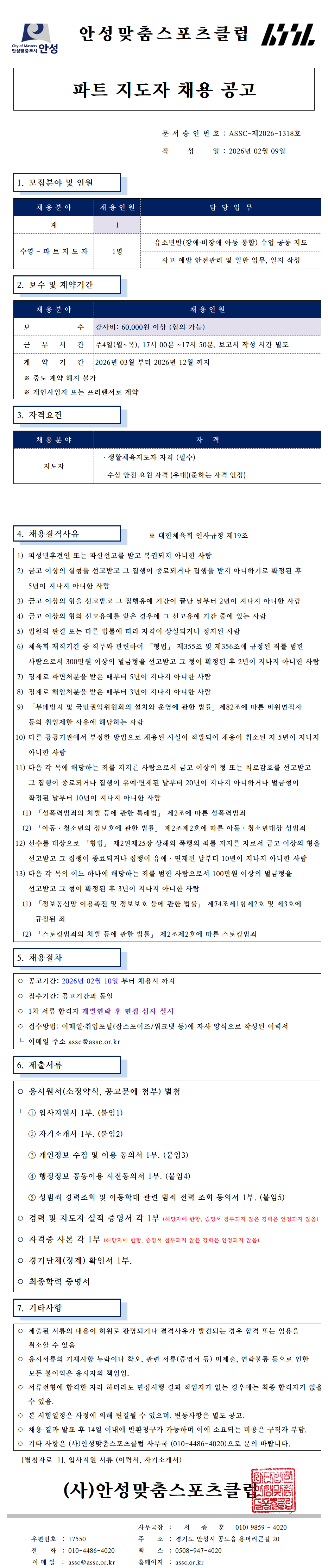 (사)안성맞춤스포츠클럽 채용 공고(수영지도자,안전가드)