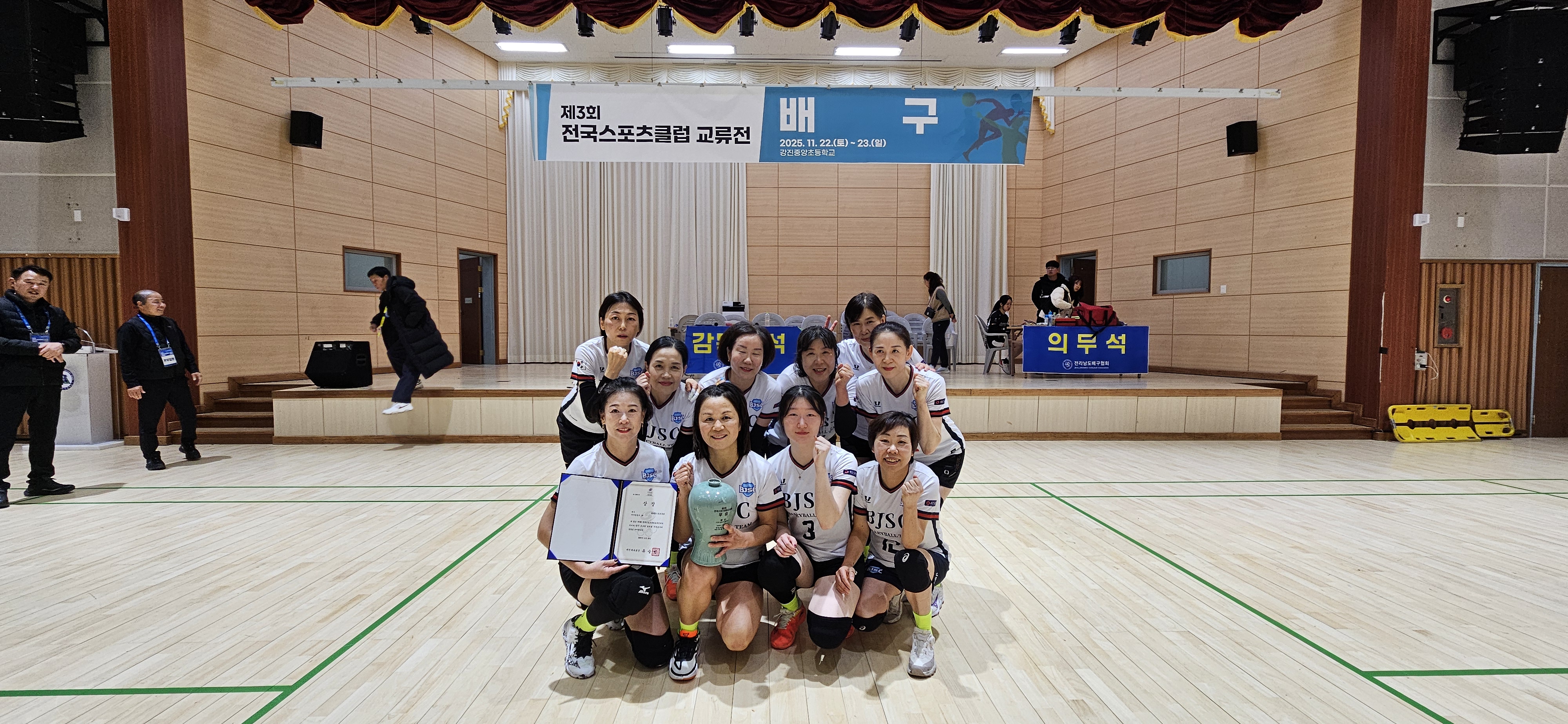 부산진구스포츠클럽 성인부 여자 배구팀이 2025년 11월 21일(금)부터 23일(일)까지 전남 강진군 일원에서 개최된 ‘제3회 전국스포츠클럽교류전’에서 2년 연속 우승을 차지하며 전국 최강팀으로서의 저력을 다시 한 번 입증했다.