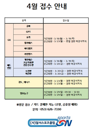 2026년 월배국민체육센터 4월 등록기간 안내