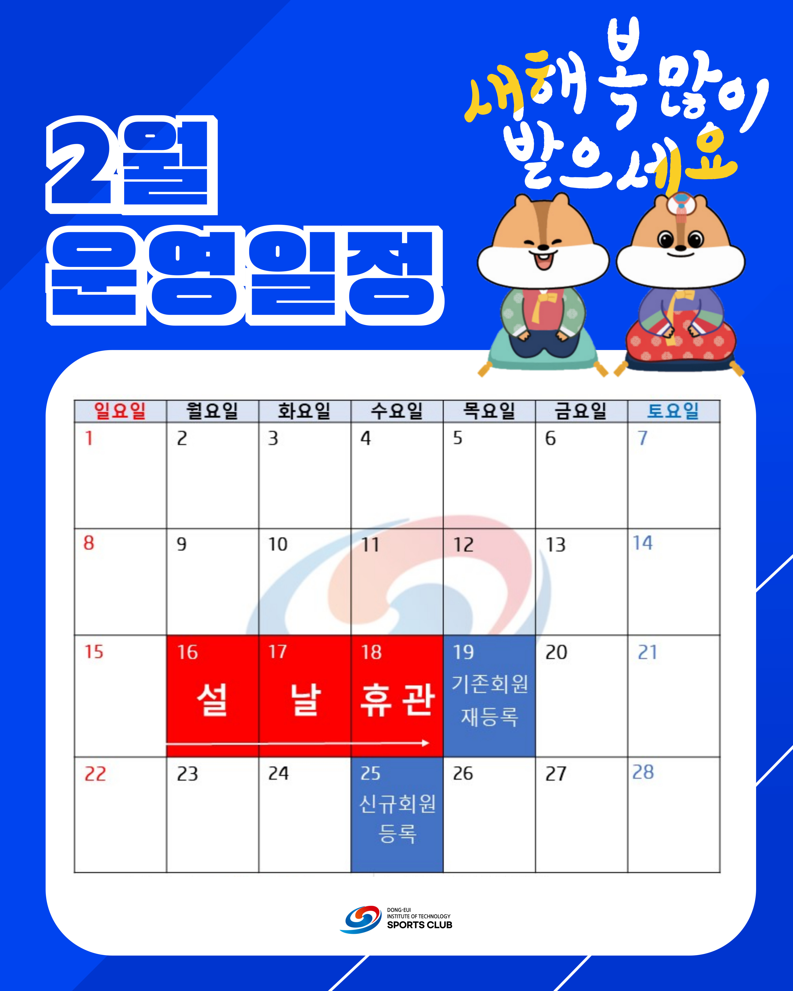 (사) 동의과학대 스포츠클럽 2026년 2월 운영일정표