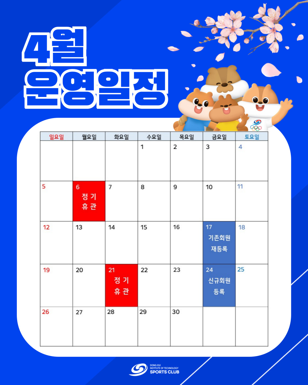 (사) 동의과학대 스포츠클럽 4월 운영일정 안내