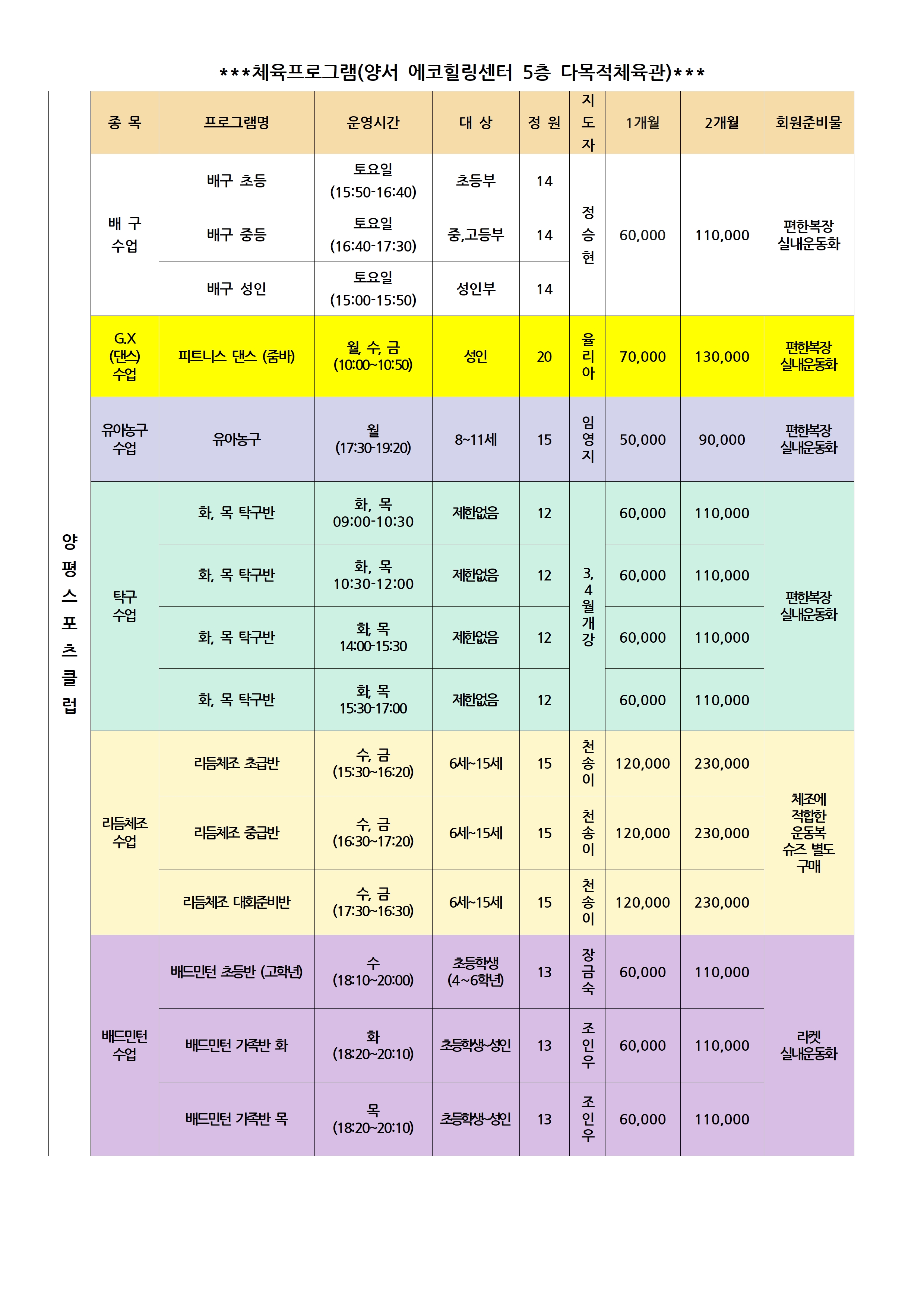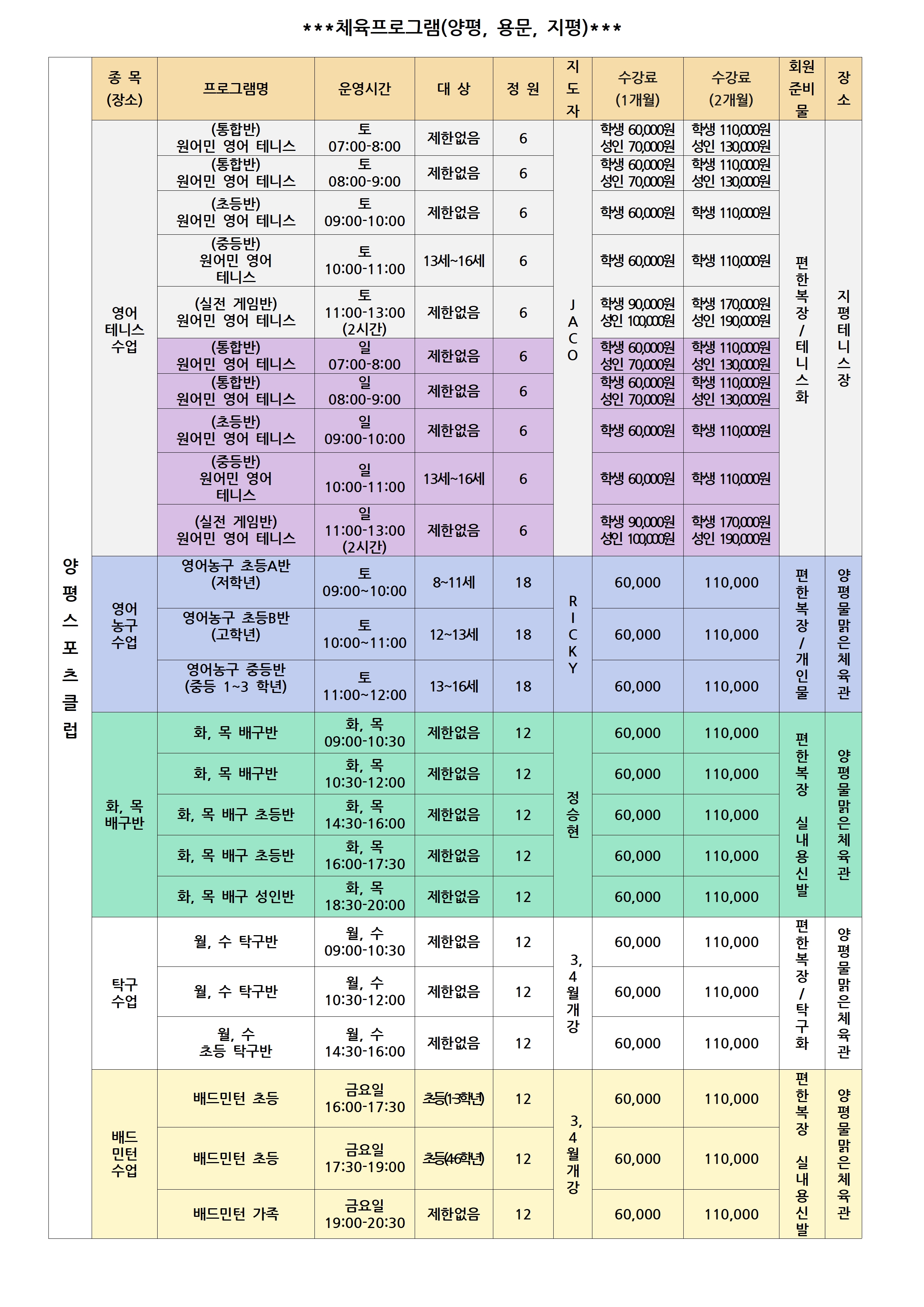 [(사)양평스포츠클럽 2026년 3월 회원 등록 안내]