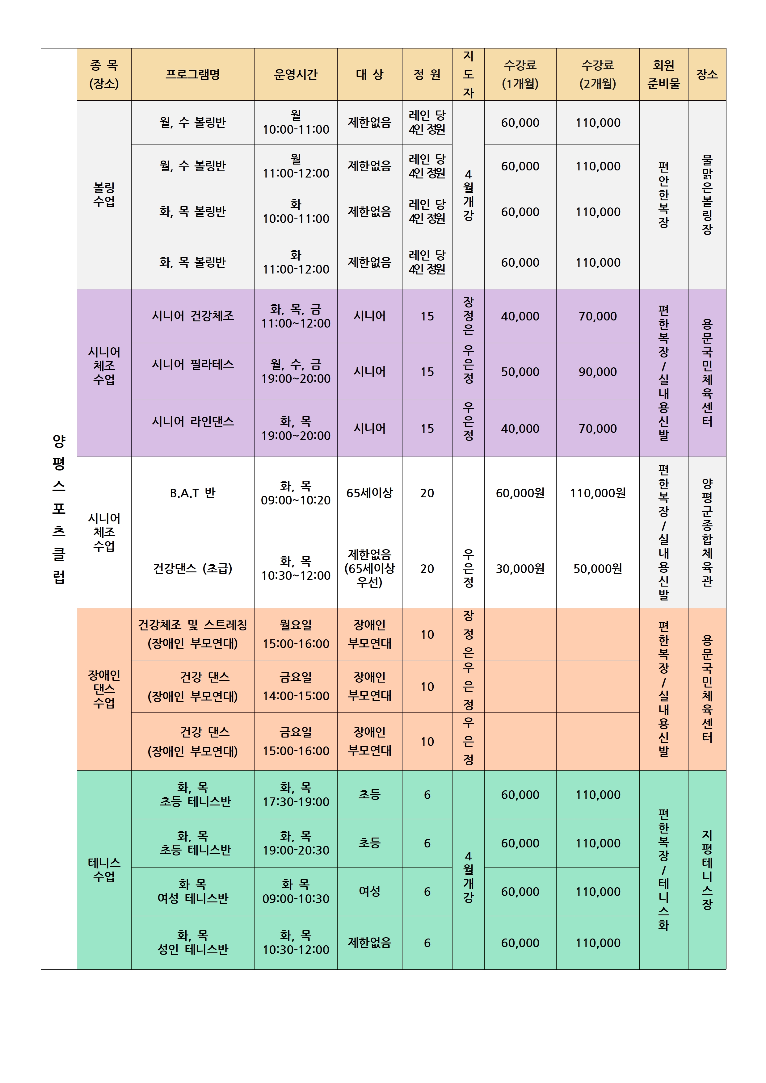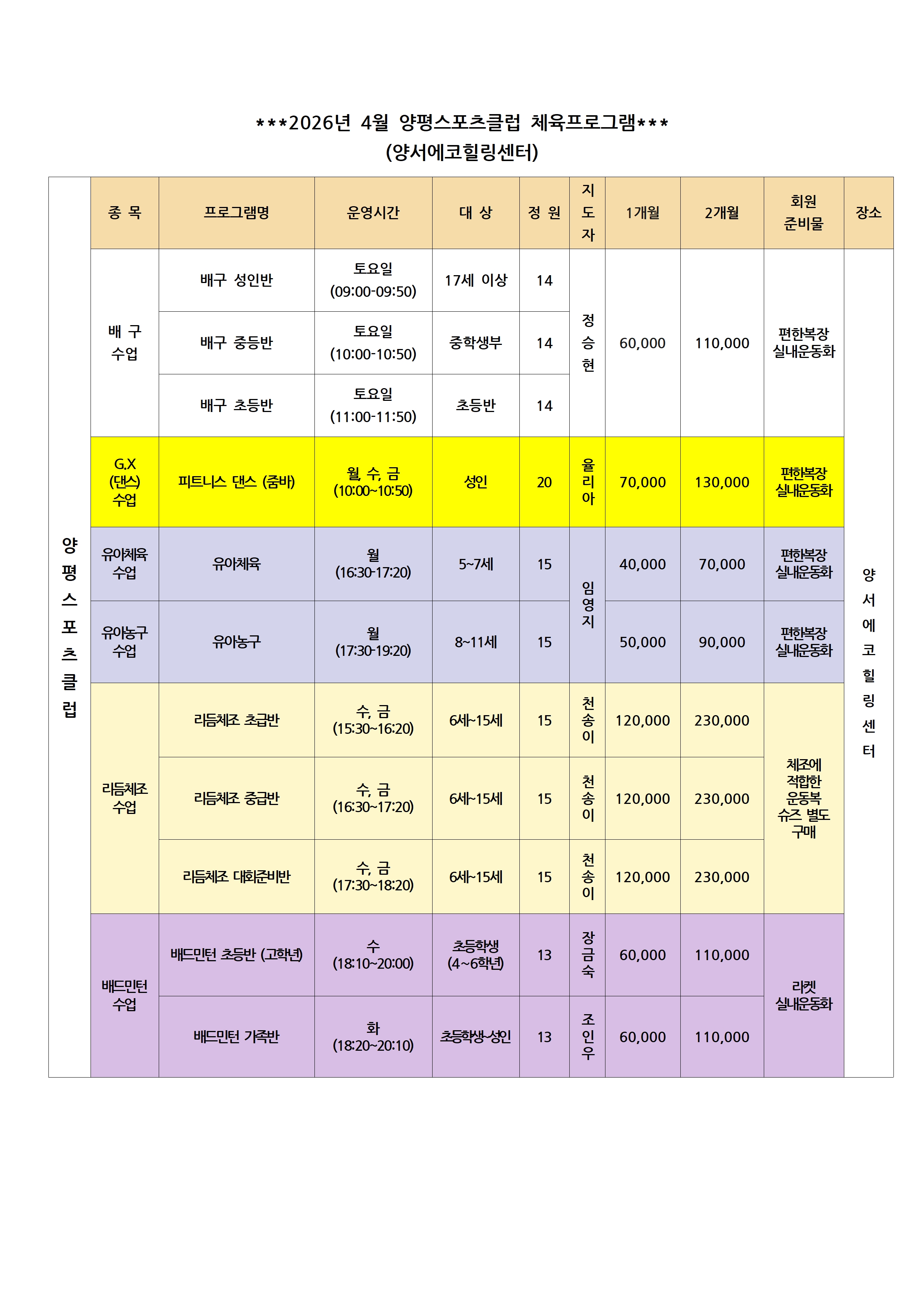 [(사)양평스포츠클럽 2026년 4월 회원 등록 안내]