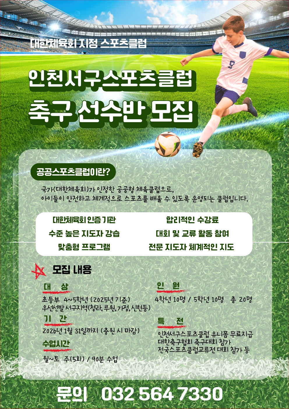 인천서구스포츠클럽 축구 선수반 모집