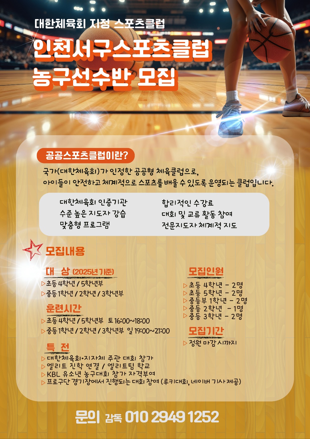인천서구스포츠클럽 농구 선수반은