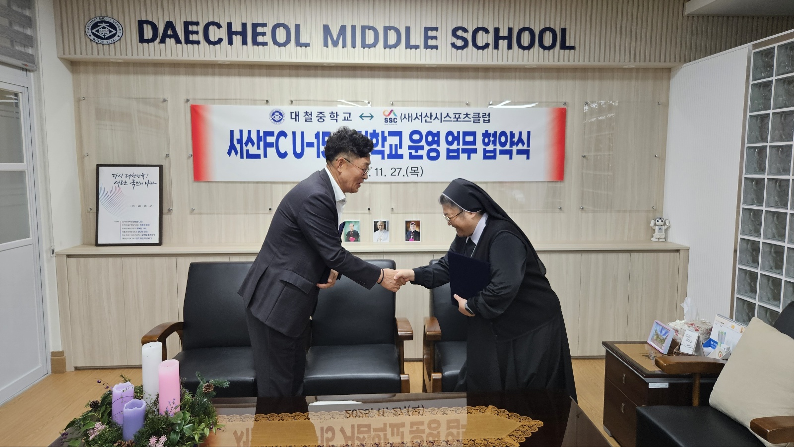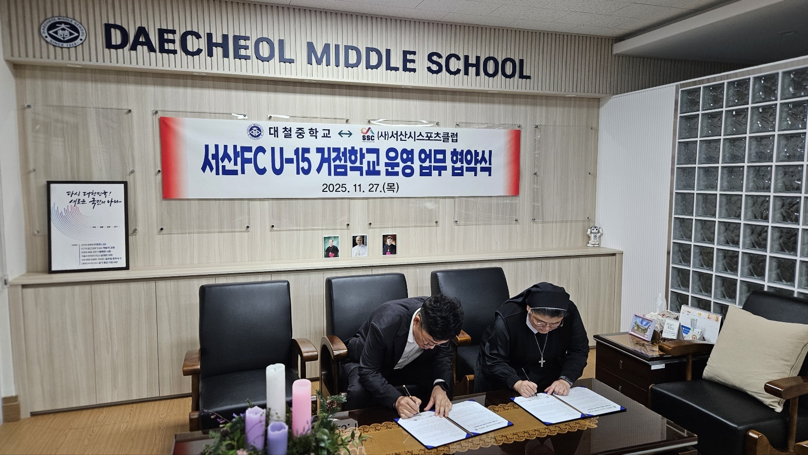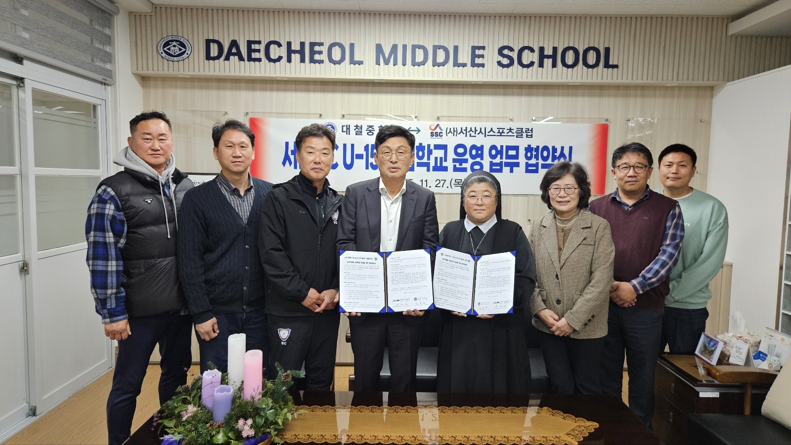 초,중,고 과정에 거쳐 효율적으로 연계 육성하고자 대철중학교와 스포츠클럽 거점학교를 운영키로 25.11.27(목) 업무 협약식을 진행하였습니다.