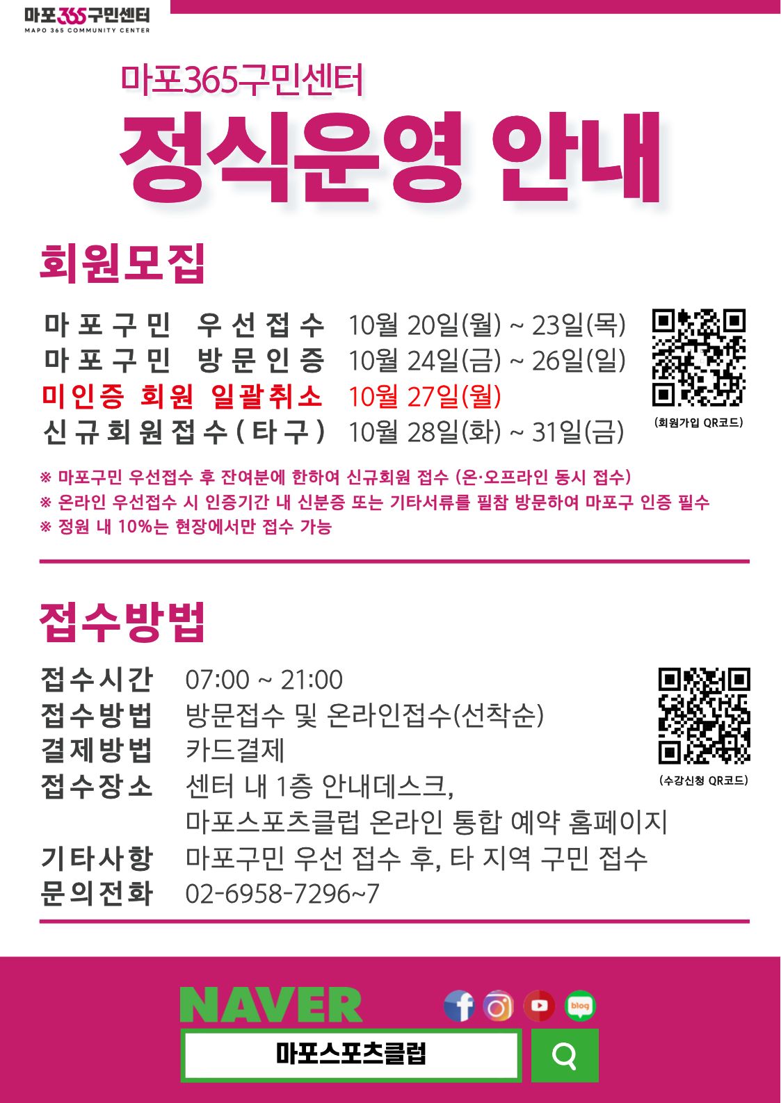 [마포스포츠클럽] 마포365구민센터 정식운영 안내