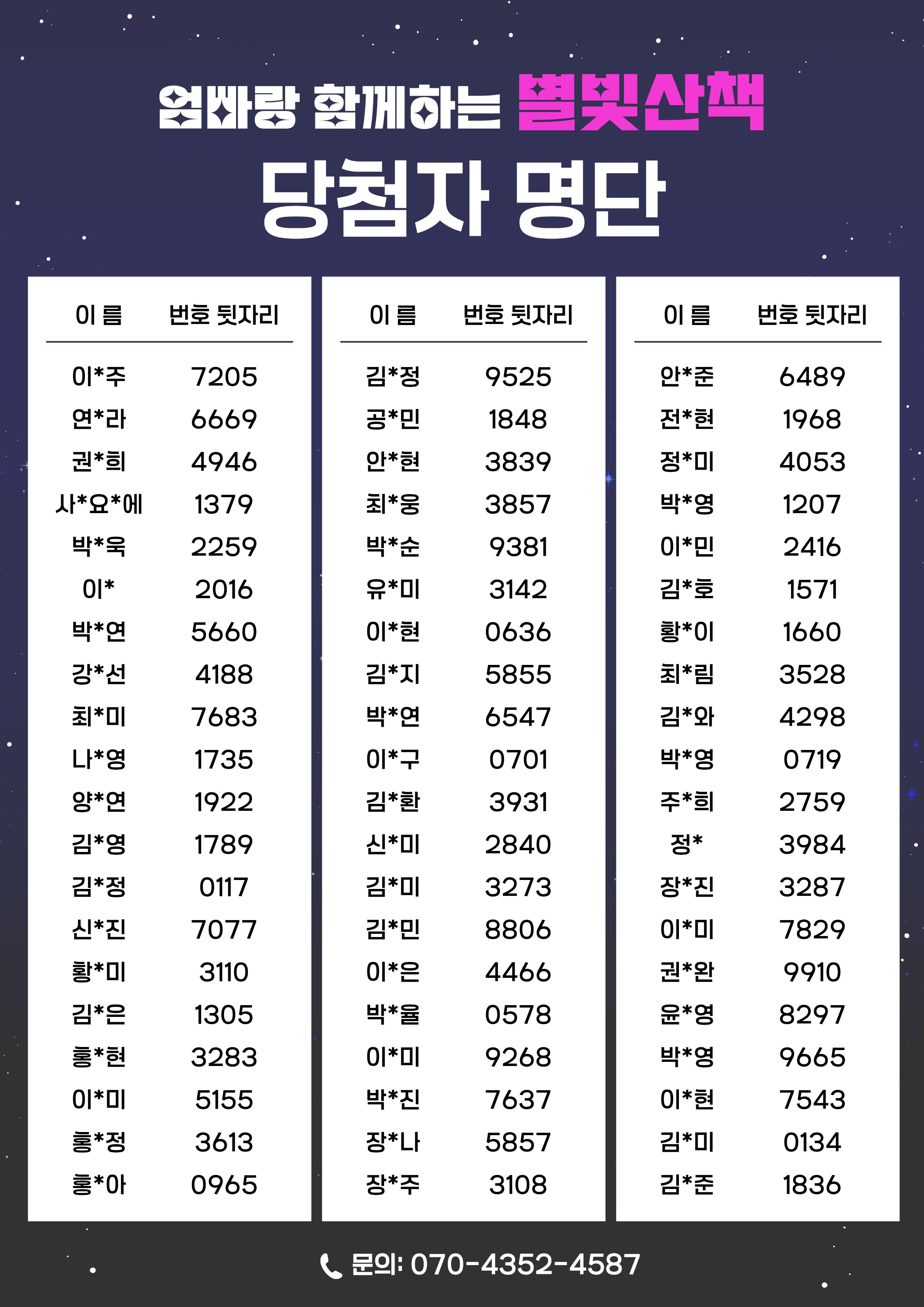 [마포스포츠클럽] 엄빠랑 함께하는 별빛산책 당첨자 안내