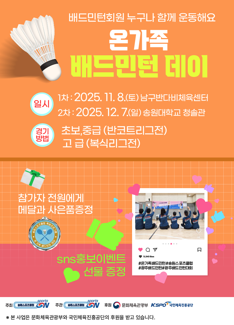 🏸송원스포츠클럽 온가족 배드민턴 데이🏸