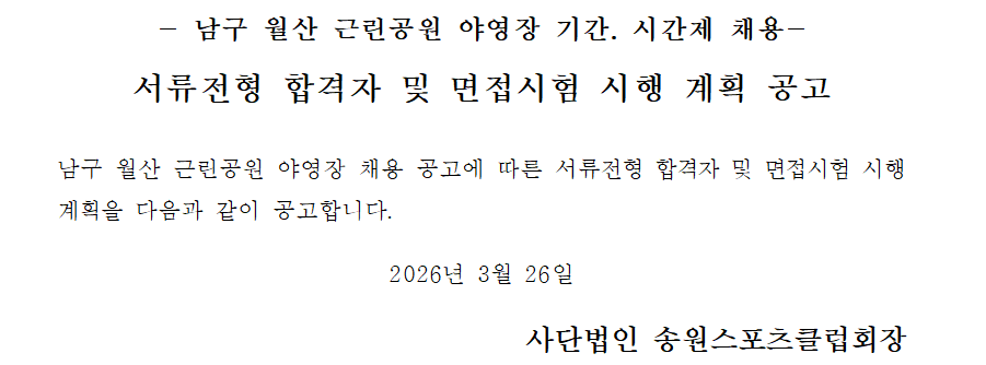채용시험 서류합격자를 다음과 같이 공고합니다