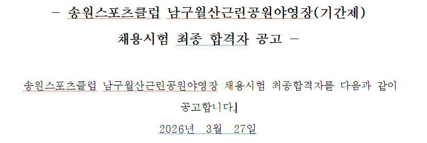 송원스포츠클럽 파트지도자 채용 공고