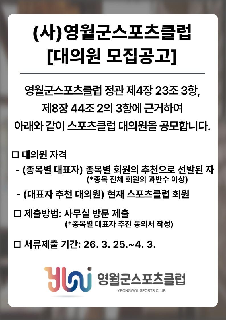 영월군스포츠클럽 대의원 모집공고