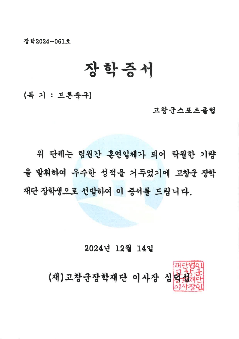 [특화] 드론축구팀(화랑) 고창군장학재단 장학증서 수여_2024.12.07.
