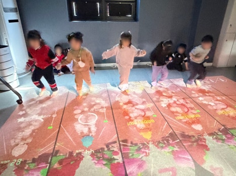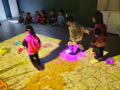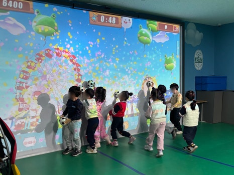 아이들의 움직임을 실시간으로 인식하고 반응하는 활동입니다.