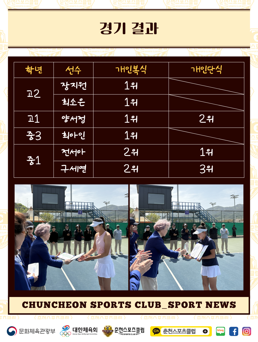 앞으로도 춘천SC 테니스부의 힘찬 도전을 응원하겠습니다.