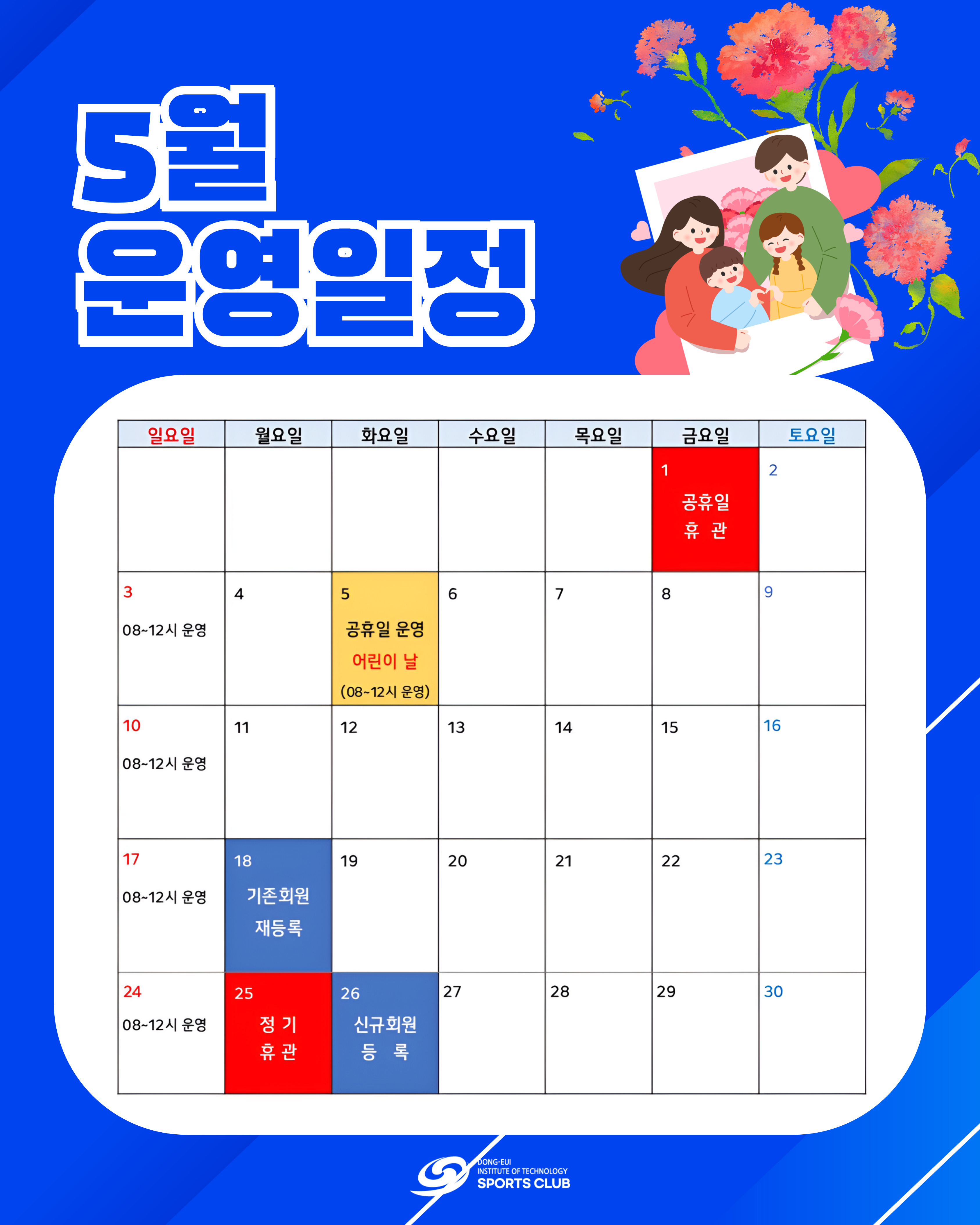 (사) 동의과학대 스포츠클럽 5월 운영일정 안내